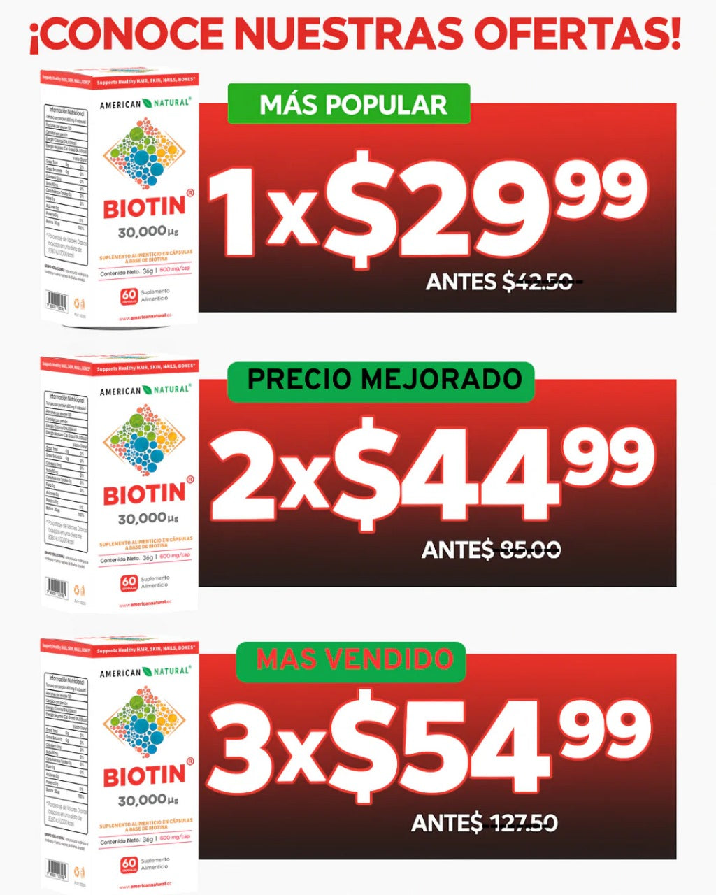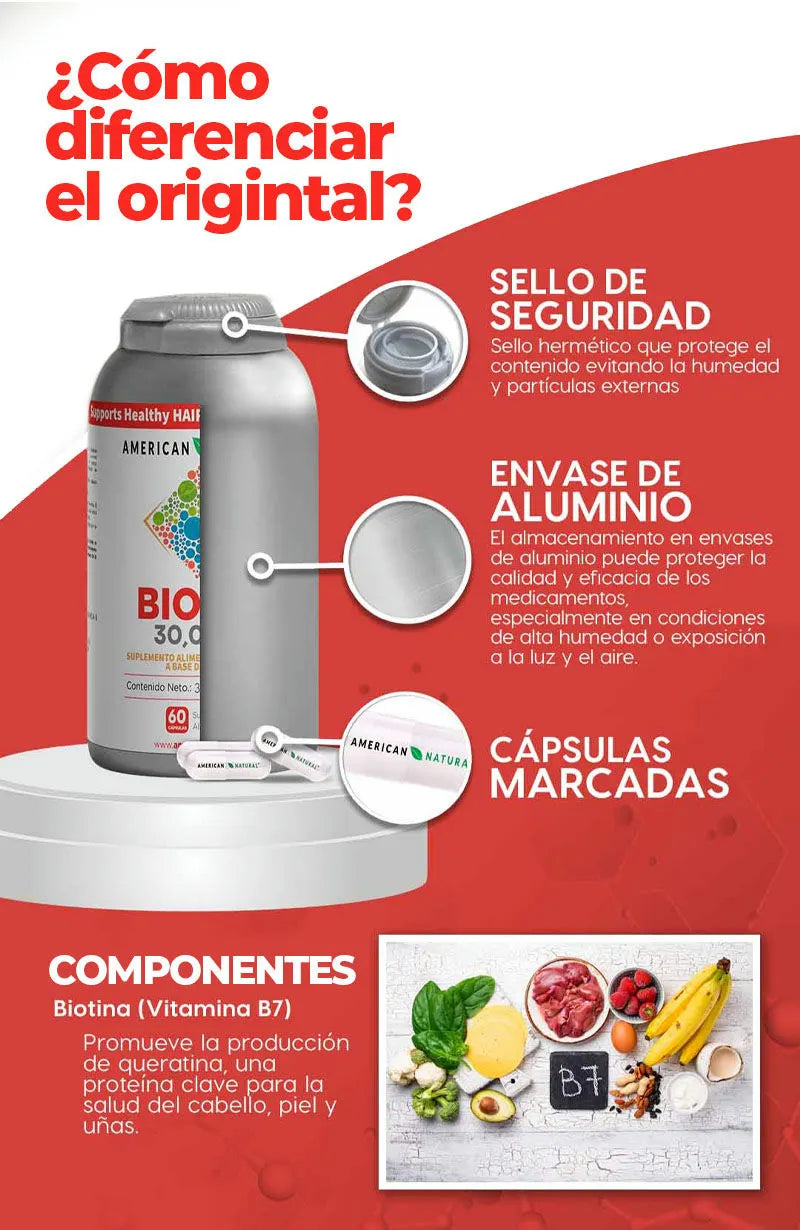 Nuestro suplemento de Biotin es 100% natural, libre de químicos agresivos y formulado para dar resultados visibles en pocas semanas.